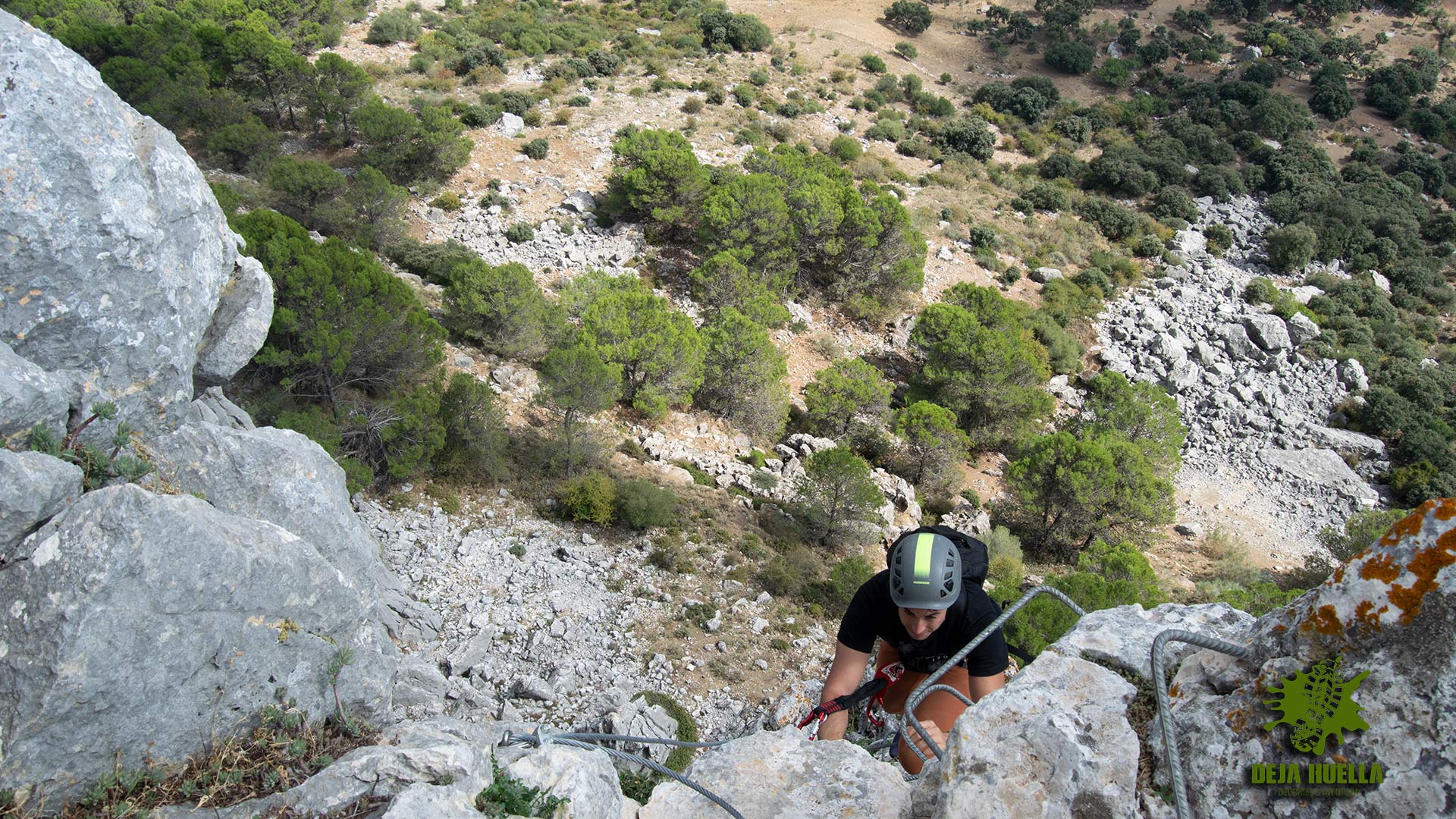 La Vía supera una gran pared vertical de unos 80 metros desde el suelo, algo extraplomada, por lo que exige tirar algo más de brazos. Sus vistas al Valle del Genal son espectaculares, y la sensación de altura inigualable. Es la más vertical de la serranía, preparada para gente atrevida y dispuesta a sentir el vértigo.